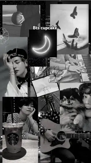 I made this fan collage of taehyung 💜 plz tell me how is it ? 🧿 And also it's black theme 🖤.
