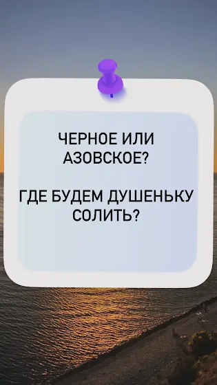 Недавно звонит мне знакомая: «У меня племянник, с детства страдает бесконечными простудами, в нашем родном Томске и с экологией проблемы, врачи переехать на юг рекомендуют. Квартиру выставили на продажу - хотят исполнить давнюю мечту: построить большой дом с террасой, где у каждого будет свое пространство для творчества и увлечений. А пока квартира продается - семья на два лагеря разделилась. Спорят - Черное или Азовское море выбрать для жизни. Что посоветуешь? Где им поселиться? Вот ты бы какое море выбрала?».