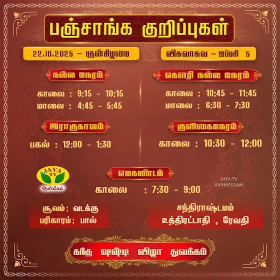 பஞ்சாங்க குறிப்புகள்...22.10.2025