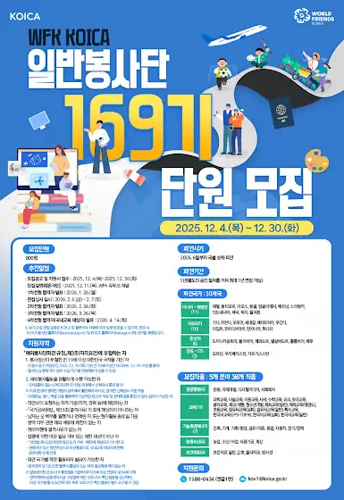 [모집] WFK KOICA 일반봉사단 169기 모집 (~12.30(화), 16:00)
