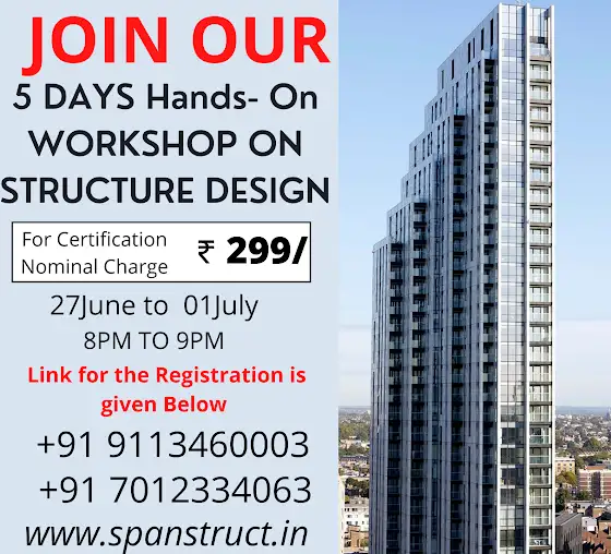 Hello, Hope you are doing well!😊 Spanstruct is conducting a 5 day online workshop on structural design of building using ETABS @ just Rs.299/- only