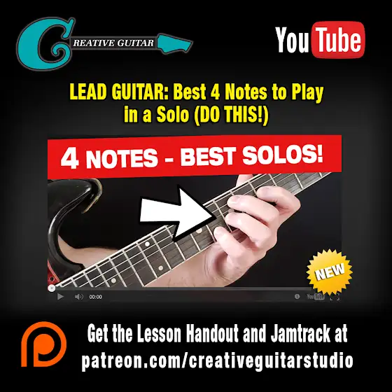 LEAD GUITAR: Best 4 Notes to PLAY in a Solo! https://youtu.be/0p7tI6RZ21s Learn to play all the correct notes to 10x your guitar solos. Patreon.com/CreativeGuitarStudio Join my members area today... creativeguitarstudio.com/ Monthly access is only $19.95 (USD)... Premium Annual Lesson Plan is just $179.40 (USD). No need to try and figure out guitar on your own. I have 25 years experience - let me help you! #guitar #guitarist #guitarsolo