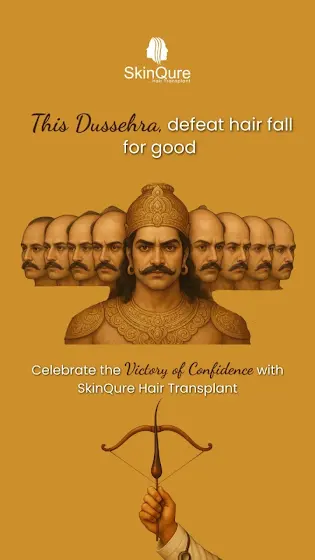 This Dussehra, let’s defeat hair fall just like Lord Rama defeated Ravana.Step into confidence with SkinQure advanced hair transplant solutions.✨ Wishing you a victorious & glowing Dussehra