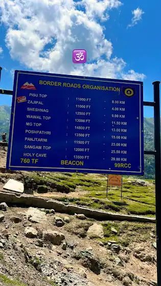 This post captures the official route that provides trekkers with vital information including kilometer markers and elevation (in feet) from each key point on the way to the Holy Cave (Amarnath Shrine). The route winds through spiritually significant and scenic stops like: • Pissu Top • Sheshnag Lake • Zajibal • Wawal Top • MG Top • Poshpathri • Panchatarni • Sangam Top • And finally, the Amarnath Holy Cave (13,500 ft approx)