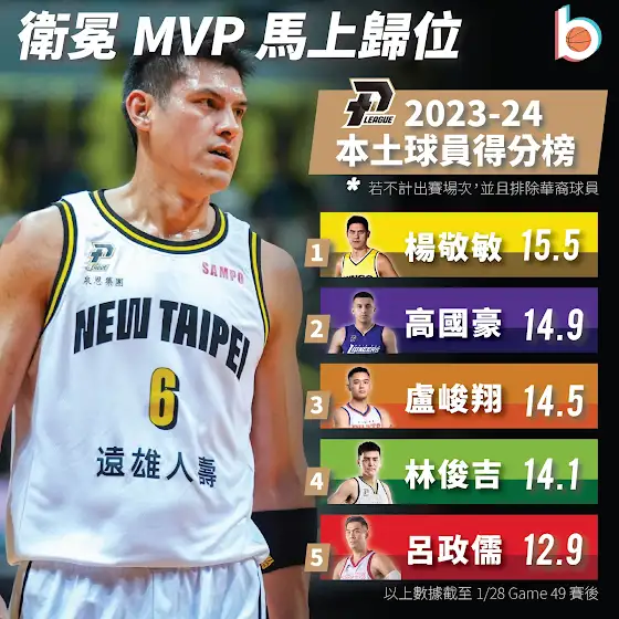 #BrosFact 作伙看亮點 👀上季休賽季因為私(ㄩㄝ)德(ㄆㄠˋ)爭議,一度號稱「#離開籃球」的 #楊敬敏,總算在近期颯爽回歸 P.LEAGUE+ 賽場,至今出賽 2 場的他,身手就像是從未離開過,輕鬆寫意地繳出場均 15.5 分、2 籃板、4 助攻、1.5 抄截的成績單,重點是他一場球也只出手 10 次左右,高效的得分效率令人咋舌。如果姑且不論出賽限制,他的得分可是空降本土球員第一!(先把 #林書豪 這個 Bug 忽略掉)甚至力壓 #高國豪、 #盧峻翔、 #林俊吉 等年輕世代,寫到這裡,小編已經分不清楚,到底是 Amigo 太強,還是我們的下一代不夠強⋯⋯不過這位老鬼還有機會挑戰年度 MVP 三連霸嗎?根據聯盟上季的規定,已經遭到 15 場禁賽的他,已確定無法達成最低要求的出賽 27 場比賽,因此只要沒有修正,Amigo 本季是無法角逐任何年度獎項的;不過光是他一復出就統治的實力,書豪應該可以放心地好好養傷了⋯⋯#難怪國王球團當寶#以前可是邊拿MVP邊時間管理的#新賽季解除封印恐怕更猛😉#哎呀還有Q也準備了