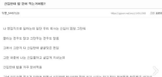 신입에게 밥 얻어먹는 빌런 댓글 일침을 가하자 돌아온 답변