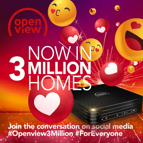 Openview NOW in 3 Million homes across South Africa. Join the conversation #Openview3Million #ForEveryone