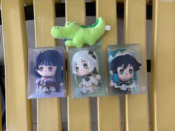 We played at a claw machine and won these cuties! I got Venti and a rly cute crocodile, and my bsf got Raiden and Nahida!! :D
