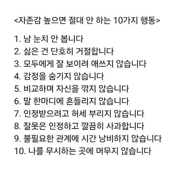 <자존감 높으면 절대 안 하는 10가지 행동>