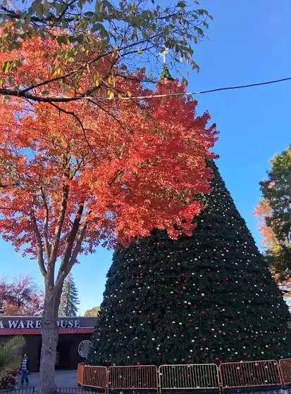 Here's the big nearly 100 foot christmas tree at kennywood. Taken at the last day of phantom fall fest. Pretty soon it'll be all lit up for holiday lights i can't wait to see it again I saw it last couple times I was at holiday lights.