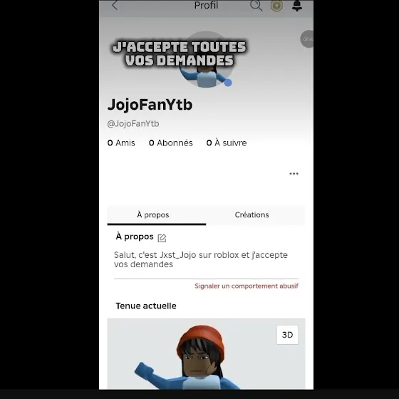 J'ACCEPTE TOUTES VOS DEMANDES D'AMIS ROBLOX SUR CE COMPTE ; JojoFanYtb