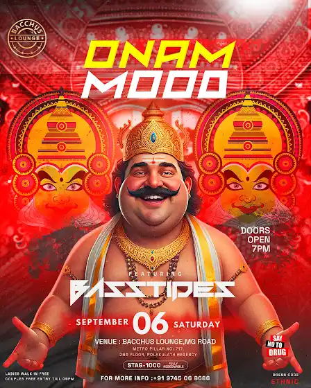 Get ready to groove and celebrate thespirit of Onam like never before!Join us for the Onam Mood Party - where tradition meets the beat!Date: 06 th Sept 2025, SaturdayFeaturing - BasstidesTime: 7pm onwardsVenue: Bacchus Lounge,Metro Piller #717, MG Road, KochiDress Code - Ethnic 🌼Dress up in your festive best and bring along your dancing spirit ✨Expect loud beats, colorful vibes, and a night full of fun and Celebration!Don't miss the party Be part of the vibe! 💃🏻