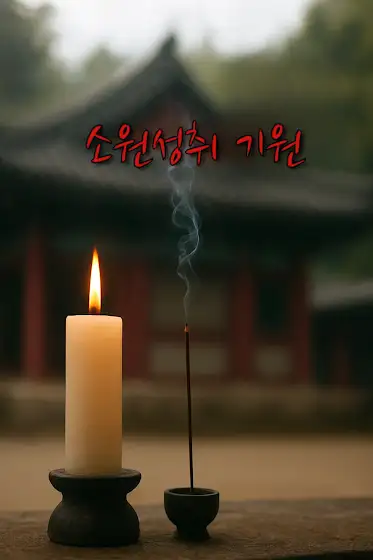 누구나 마음속에 하나쯤 간절한 소원이 있지요.이곳에서 잠시 멈춰, 향을 피우고 초를 켜며그 마음을 글로 남겨보세요.“소원성취 기원”의 공간에 남긴 한 줄의 소망이 하루에 따뜻한 빛이 되어 돌아올거라 믿습니다.💫 원하는 소원을 자유롭게 남겨주세요.