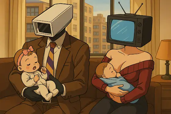 Hola Chicos, Aquí Muestro Un Imagen pedí A ChatGPT sobre el Ship de Brown cameraman x TVWoman.La Izquierda, Brown cameraman Esta Sujetando la Bebé Es Una Niña Para Dormir.La Derecha, La TV Woman Ella Está Amamantando un Bebé es Una Niño para que Alimente Para Tranquilizalo.Cuando Brown cameraman y TVWoman se Convirtió Padres Adoptivos.Entonces @K_Z_2025 @Talpidomon64 Que Opinan.