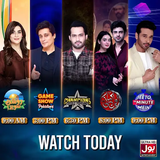 Catch our exciting shows for nonstop fun and pure entertainment you can’t miss!#BOLEntertainment #AmnaMalik #RoshanSawera #SahirLodhi #GameShowPakistani #WaqarZaka #Champions #BOLKahani #FaysalQuraishi #JeetoEkMinuteMein