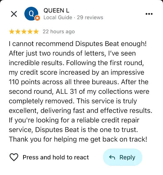 One of our amazing Dispute Beast users just shared their life-changing journey with us. After only TWO rounds of letters, they witnessed an astonishing 110-point credit score jump across all three bureaus. But that’s not all—after the second round, ALL 31 collections were completely REMOVED from their credit report.