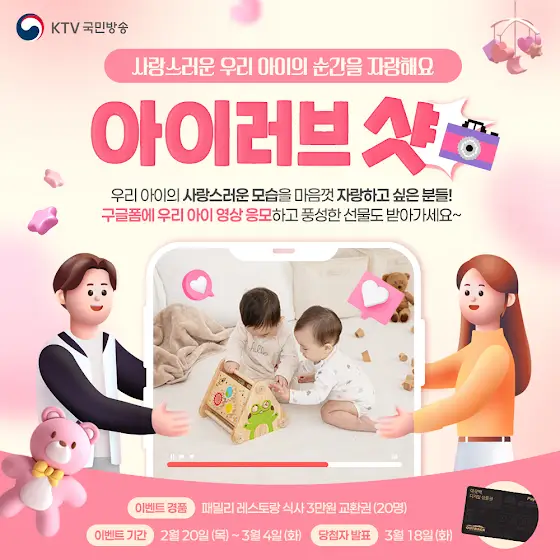 이벤트에 당첨된 우리 아이들의 사랑스러운 순간들을 KTV ‘아이러브아이’ 채널에서 대신 자랑해 드려요~!