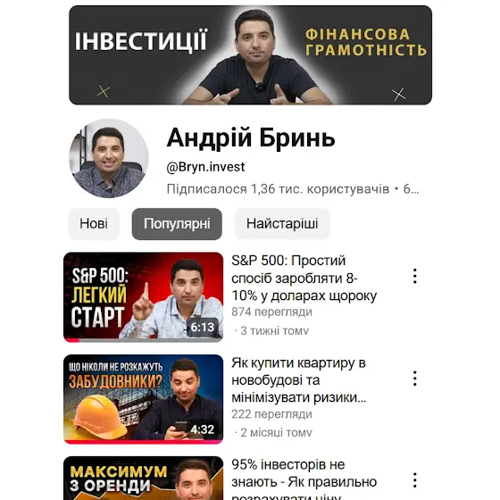 Всім привіт 👋Запрошую на свій Ютуб Канал 🎥💼 Розказую про свій досвід в інвестиціях та про фінансову грамотність.📚 Про те, що не вчать в школі, але обов'язково потрібно знати кожному.🕔 Відео короткі, на 5–7 хв, але інформативні. Нові відео публікуються кожної середи.🎯 Зроблені не для монетизації ютуб, а для максимальної користі глядача .Це мій вклад у підвищення фін. грамотності українців.✅ Підписуйтесь , дивіться , підтримайте відео вподобайками ❤️ — це буде ваш вклад в себе і підтримку каналу.