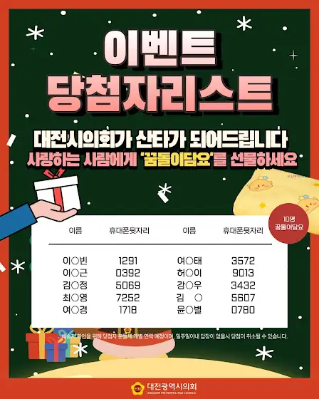 🎉 [당첨자 발표 / 대전시의회가 산타가 되어드립니다] 🎉