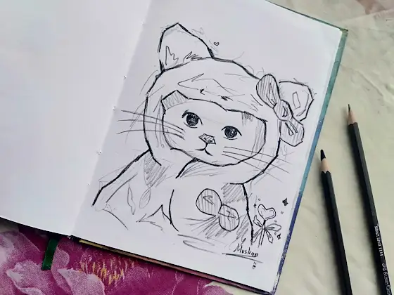 Simple adorable cat skecth|
