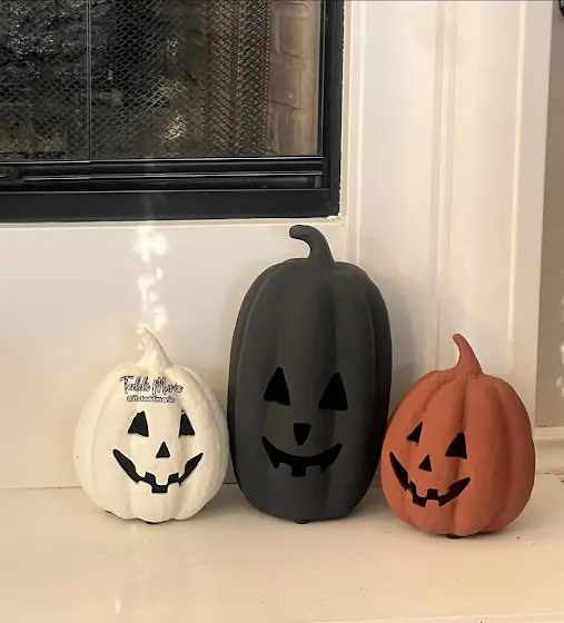 I'm obsessed with these pumpkins! I can add LED tea lights for that spooky ambience!