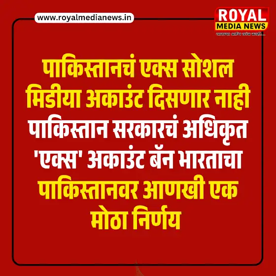 पाकिस्तानचं एक्स सोशल मिडीया अकाउंट दिसणार नाही पाकिस्तान सरकारचं अधिकृत 'एक्स' अकाउंट बॅन भारताचा पाकिस्तानवर आणखी एक मोठा निर्णय