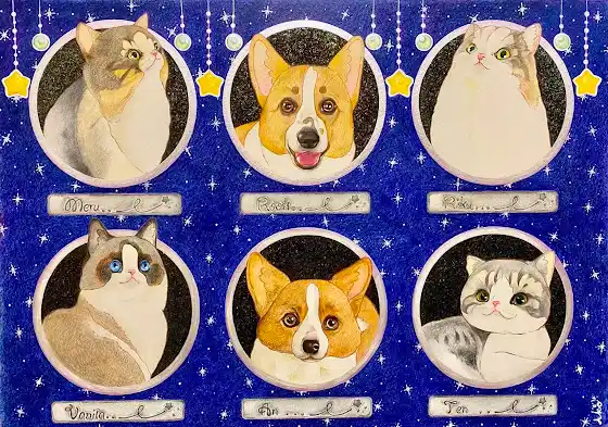 我が家のワンニャンズの似顔絵を