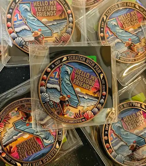 Hì everyone, Pam's beautiful coin is now available ,It's a $25 channel donation and shipping included,If you want to have it you must email her ScratchWithPam@Gmail.com