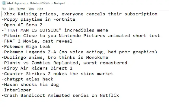 Forgot to share what I have planned to talk about on What Happened in October (2025) let me know any suggestions