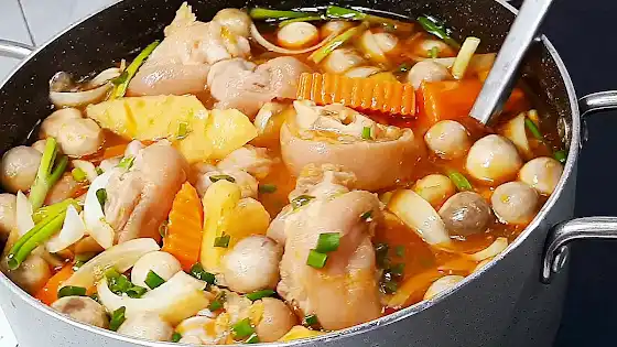 Trời lạnh lạnh có nồi chân giò heo nấu khóm này ăn kèm bún là nhức nách hihi.