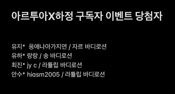 아르투아와 함께 진행했던 구독자 이벤트 당첨자 공지해드릴게요 :)