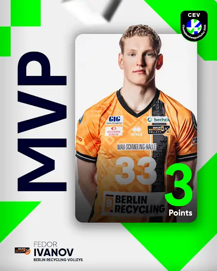 Fedor Ivanov wins the MVP with 3 points, 1 ace, and 1 kill block. 🏐🔥