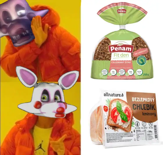 Můj kolega @Purple_Fox83 vymyslel tento parádní meme a tak jsem ho vytvořila, originální meme na Mangle, jestli znáte tu teorii kdy je alergická na lepek tak pochopíte 🤣💜