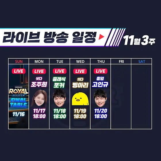 금주 한게임 라이브 일정입니다.