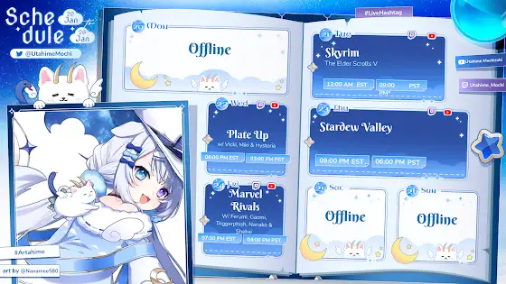 🌦️ STREAM SCHEDULE!🌦️ Jan 20th - Jan 26th HOW DO I BEAT UP KIDS IN SKYRIM?!Stream: #MochiOnAirGeneral: #UtaNewsMeme: #UtamemeArt: #Artahime YouTube: youtube.com/@UtahimeMochizukiTwitch: twitch.tv/utahime_mochi