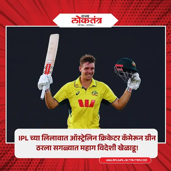 कॅमेरून ग्रीन ठरला लिलावातील सर्वात महागडा विदेशी खेळाडू, केकेआरच्या संघाने लावली सर्वात मोठी बोली, कॅमेरून ग्रीनवर आयपीएल 2026 च्या लिलावात मोठी बोली लागली आहे. चेन्नई सुपर किंग्स व केकेआर या दोन्ही संघांनी बोली सुरूच ठेवली, कॅमेरून ग्रीन ठरला आयपीएल इतिहासातील सर्वात महागडा विदेशी खेळाडू, आयपीएल 2026 च्या मिनी लिलावाला सुरूवात झाली आहे. या लिलावात २ कोटी मूळ किंमत असलेल्या खेळाडूंवर बोली लावण्यास सुरूवात झाली. यामध्ये कॅमेरून ग्रीनचं नाव घेताच संघांमध्ये बोलीची चुरस झाली. ग्रीन हा आयपीएल लिलावातील सर्वात महागडा विदेशी खेळाडू ठरला, सर्वात आधी मुंबई इंडियन्स व राजस्थान रॉयल्स यांनी बोली लावली, मुंबईने सर्वात कमी पैसे असल्याने माघार घेतली. तर राजस्थानने 10 कोटींचा आकडा गाठताच माघार घेती. यानंतर केकेआर व चेन्नई सुपर किंग्स यांनी मात्र माघार न घेता मोठी बोली लावली. दोन्ही संघ कॅमेरून ग्रीनला संघात सहभागी करण्यासाठी चुरस सुरू झाली. अखेरीस केकेआरने बाजी मारत कॅमेरून ग्रीनला 25.20 कॅमेरून ग्रीन ठरला लिलावातील सर्वात महागडा विदेशी खेळाडू, केकेआरच्या संघाने लावली सर्वात मोठी बोली.