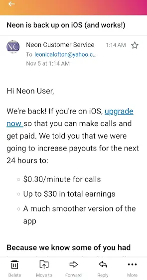 Good morning everyone. Here is an update about the Neon app. It is back working for Iphone Users.