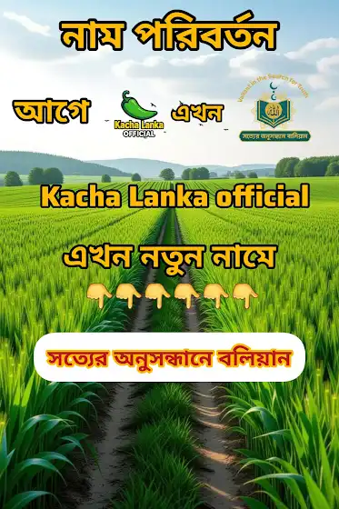 আপনারা জানেন, আমাদের চ্যানেলের মূল ফোকাস হলো বিশুদ্ধ কুরআন ও সহীহ হাদিসের আলোকে গভীর আলোচনা ও ঐতিহাসিক সত্য তুলে ধরা। কিন্তু আমাদের আগের নামটি ( kacha Lanka official ') একটু কমেডি বা রসাত্মক স্বভাবের ছিল। এর ফলে অনেকেই ভিডিওতে ক্লিক করতেন ঠিকই, কিন্তু সিরিয়াস আলোচনা দেখে দ্রুত বেরিয়ে যেতেন। এই অসামঞ্জস্যের কারণে ইউটিউব অ্যালগরিদম আমাদের ভিডিওগুলোকে সঠিক ইসলামিক দর্শকের কাছে পৌঁছাতে পারছিল না। তাই, সত্যের প্রতি দৃঢ় অঙ্গীকার (Strong Commitment to Truth) নিয়ে আমরা আমাদের নতুন যাত্রা শুরু করছি। এই নতুন নামটি আমাদের কনটেন্টের গুরুত্বকে সঠিকভাবে প্রকাশ করবে।