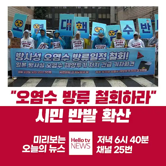 일본 정부가 24일부터 후쿠시마 원전 오염수를 방류하기로 결정하면서 시민들의 반발이 확산되고 있습니다. 자치단체들은 우려가 현실로 다가왔다며 시민 피해를 최소화하기 위해 대책마련에 나섰습니다.잠시 후 저녁 6시 40분, 헬로tv뉴스에서 확인하세요!