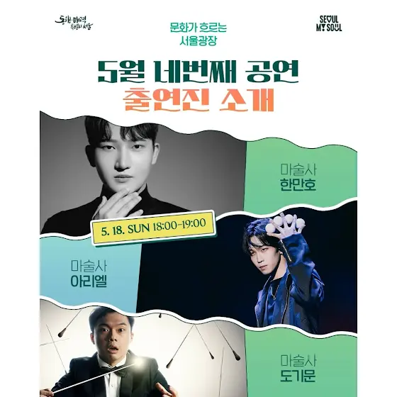 <문화가 흐르는 서울광장>에서 한만호, 아리엘 마술사와 공연합니다🪄🔥📌일시 : 2025. 05. 18.(일) 18:00~19:00📌장소 : 서울광장.자세한 정보는 홈페이지 참고:cultureseoul.co.kr/.#마술 #마술사 #마술공연 #도기문 #한만호 #아리엘 #더매직스타