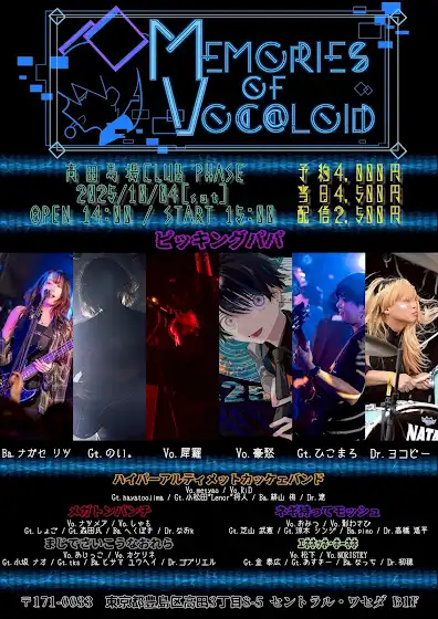 【 配信ライブのお知らせ 】“ MEMORIES of VOC@LOiD Vol.3 ”日時:2025 / 10 / 4 15:00 〜場所:ツイキャスにて有料(¥2,500)チケットURL:twitcasting.tv/clubphase/shopcart/377928YouTubeでのお知らせが遅くなってしまい申し訳ありません…!!明後日です。こちらから買われる際は、是非ともお目当てのボーカルに「豪愁」とお書き下さい。現地希望の場合は一応当日券が取れる可能性があります!アーカイブも残ります。何卒! #メモボカ3