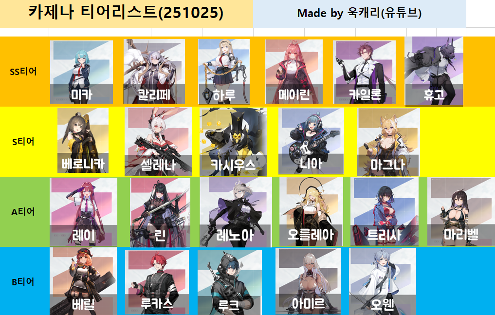 그래도 티어표가 완전히 잘못된건 아니긴한데 대체적으로 4성친구들이 저평가 되어있었다고 생각하시면됩니다.