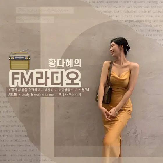 안녕하세요. [황다혜의 FM라디오] 황다혜입니다.2023년 1월 1일을 시작으로 "첫 정규방송" 을 하게 되었어요!___________ 정규방송 시간은 매일 밤, 11시! ___________고품격을 추구하는 [황다혜의 FM라디오] 많관부[♥]복잡한 세상을 현명하고 지혜롭게 / 고민상담소 / 소통FMASMR / study & work with me / 책 읽어주는 여자애청자분들과 모든 청취자분들 새해 복 많이 받으세요[♥]