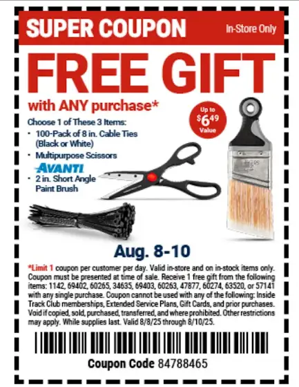 Here is the Harbor Freight FREE Item Coupon for this weekend in case you haven't gotten it already. It was supposed to be NO Purchase necessary but I guess some greedy executive changed it because MONEY!!!! So they made it with "ANY" purchase instead. Enjoy!!!