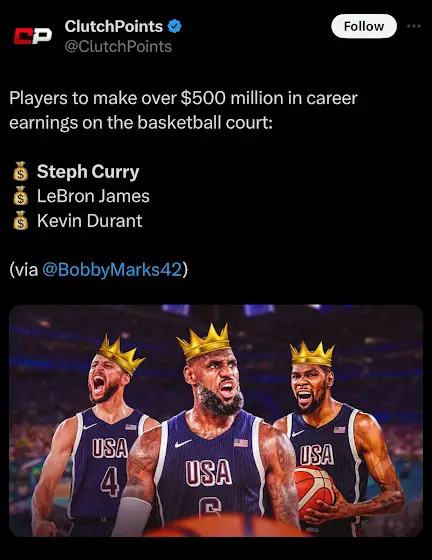 LeBron James, Steph Curry, and Kevin Durant are getting paid! 🤯 (via clutch points)