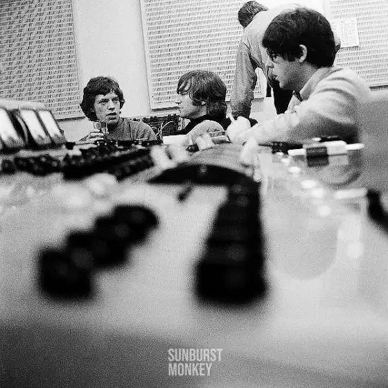 Mick Jagger de visita con John Lennon y Paul McCartney en las sesiones de Paperback Writer en 1966.