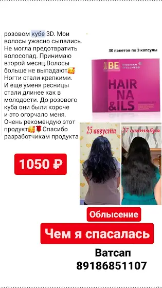 ОБЛЫСЕНИЕ... ЧЕМ Я СПАСАЛАСЬ. Читай отзывы👇 . . . Здравствуйте! Хочу поделится отзывом о розовом кубе 3D. Мои волосы ужасно сыпались. Не могла предотвратить волосопад. Принимаю второй месяц.Волосы больше не выпадают🥰Ногти стали крепкими. И еще уменя ресницы стали длинее как в молодости. До розового куба они были короче и это огорчало меня. Очень рекомендую этот продукт🥰🌹Спасибо разработчикам продукта🙏🙏🙏🙏
