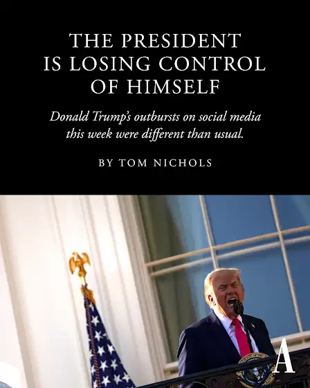 “Presidents often lose control over their agenda, or the policy process, or pieces of legislation. Sometimes, they even lose control of their party. But Donald Trump seems to have lost control over the one thing every person, and especially those with immense power, should always maintain control over: himself,” Tom Nichols argues. theatln.tc/mXs9ekBj