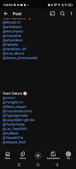 Team Sunflower 🌻1.@Mizuk616 2. @prettykaori 3.@twix.impact 4.@chacashat 5.@jellyemikoo6.@Fayhehe 7.@Ventiifann_69 8.@lxvai_athxnd 9.@demon_princesseditz 10.11.12.13.14.15.Team Sakura 🌸1.@mvtw1 2.@Twilight.r1n 3.@Starry_impact 4. @CrystalArlecchino 5. @TigertigerYatta 6. @Lunar.Midn1ghtr4in 7. @FluffyxTeddy 8.@Lav_Pearl5491 9.@XuliMulii 10.@TeawithTifa 11.@Warped_Wish12.13.14.15. Mention :@Rubyy.ৎ @Rosemoon_169 @kinichlover71 @Gemstoneeditz.ৎ @MydeiAndPhainon_Editz @CometsN-Rockets @Collei-Furina-Main-And-Kin @Crystal-Chan_Official @Chyxrll @KazukoMoonEditz @Karuko-chimiru @Chiiyumi_luvii @yunixea @DeLusile @D4rk_Ang3lz @DeLusileAlt @StarryYuki @EshnerxNeuvii @fu.fuuuuu @x_.N1ghtq._xৎ @Berriquee @Muulovesvil @Mxriette_Edits @MiyaxLovesSatoru @MIDNIGHT-4911 @YOU