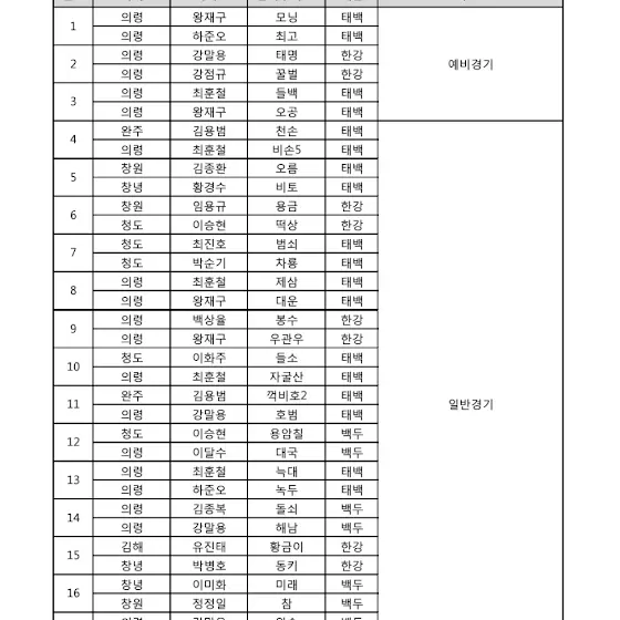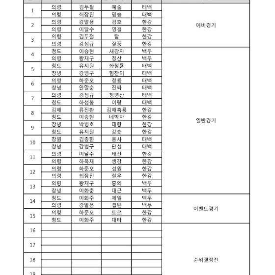 25년 의령 추석맞이 민속 소 힘겨루기대회 대진표